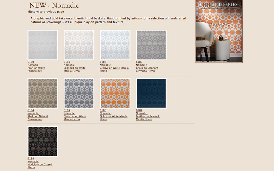 “Nomadic” is a Phillip Jeffries Wallcoverings collection, that is handpainted on natural grasscloths by artisans and are inspired from the bold patterning of tribal baskets. The graphic quality offers a distinctive modern accent to an interior and several colorways are available. Phillip Jeffries stocks over 1100 natural wallcoverings including Japanese Paper Weaves, Gold Leaf, Grasscloth, Hemps, Silks, Linens, Granite, and Raffia. Check out the link below, I’m sure you will find the perfect wallcovering to enhance the mix within your interior living and work spaces!