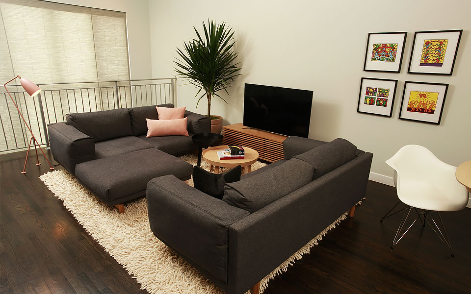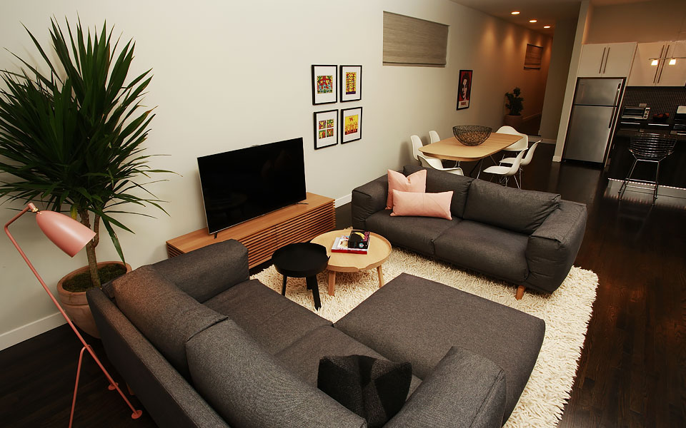 Completely furnish and provide guidance for selections of modern and mid century classic furniture. Create a furniture plan that offers a cohesive look throughout the open plan of the kitchen, dining and living room that will coordinate throughout the duplex. Maintain a neutral palette with pops of color for accent. Assist in guidance and selections of modern poster wall art and accessories that compliment the overall modern and contemporary styling.