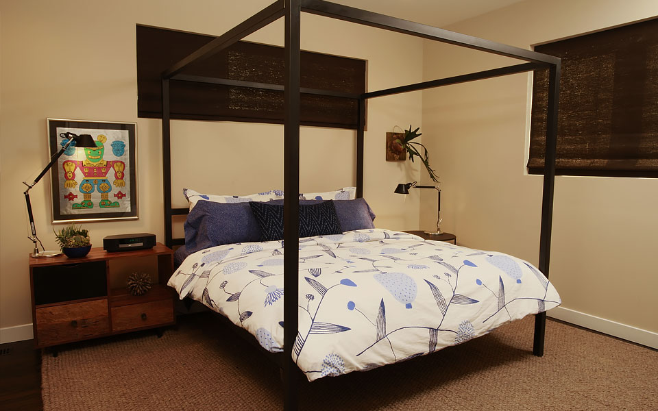 A furniture plan was designed to allow for specific areas of function within the open plan of kitchen, dining and living room. A balance of authentic mid century modern master furniture was selected along with contemporary modern furniture to furnish this home. Fabric selections maintained a neutral color scheme with color accented in pillows, accessories and wall art.